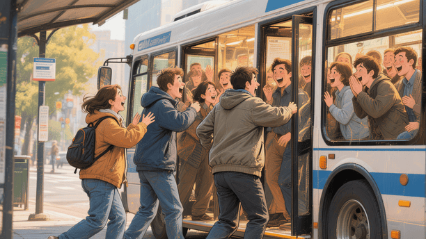 欢乐时刻:在公交车上想放屁结果到站