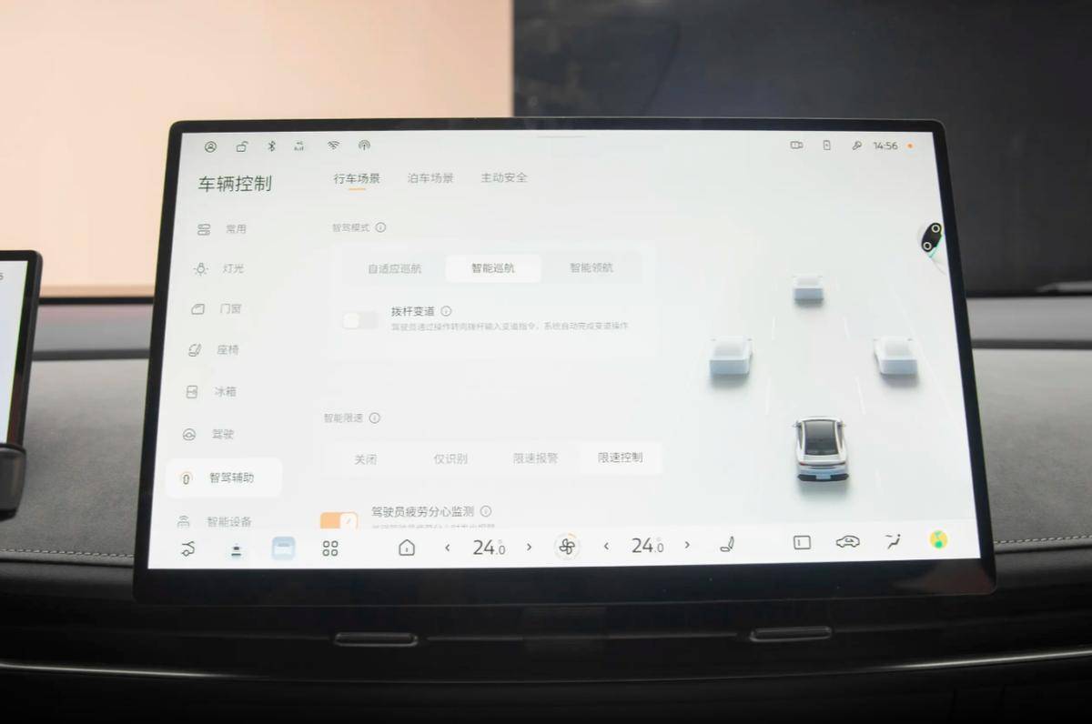 试驾过程中,我在行车过程中着重体验了车内的智能化配置,因为在我的认知里,能方便盲操作才是实用性的体现,车机内部配有8295P芯片,带来了丝滑的车机交互响应,车内前后排均配有语音助手,“你好小尼”的唤醒词较为亲切,我专门测试了“后排有点冷”、“导航到最近的公园”等模糊指令的识别率,我发现车机均能快速响应。全车还配有NVIDIA DRIVE Orin芯片和Momenta的辅助驾驶系统,使得整车具备了L2+级的辅助功能,在我试驾的城市路段中,系统对加塞车辆的预判能力甚至优于多数人类驾驶员,而遇到施工路段时,自动规划的绕行路线也较为精准。不过需要指出的是,我在高速路段试驾时,高速NOA在超大曲率弯道中设定仍略显保守,方向盘修正频率略高。