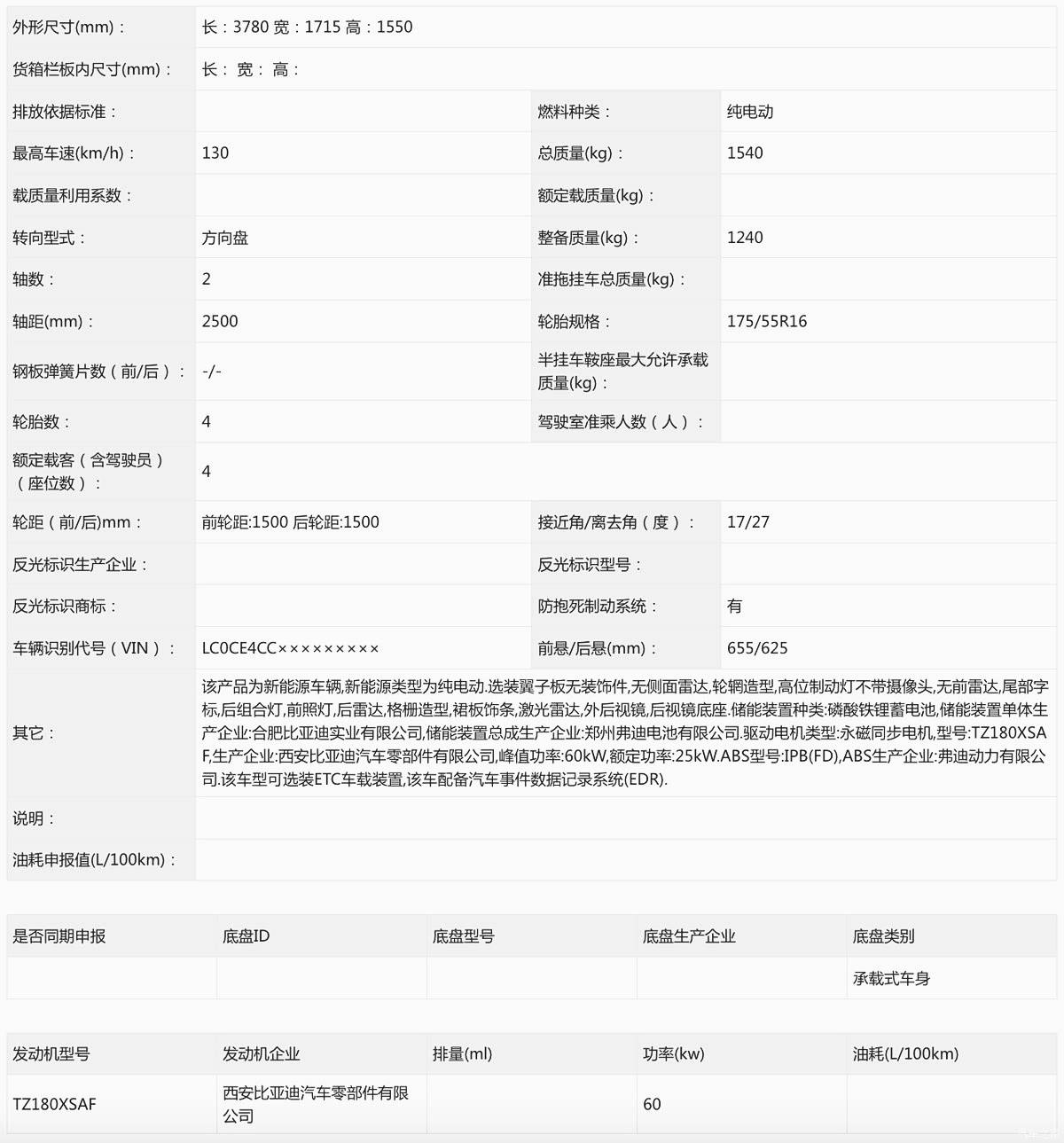动力性能方面,新车依旧搭载单电机驱动系统,电动机的最大功率由现款的 55kW 提升至 60kW,最高行驶车速可达 130km/h,电池组则匹配弗迪品牌的磷酸铁锂动力电池。